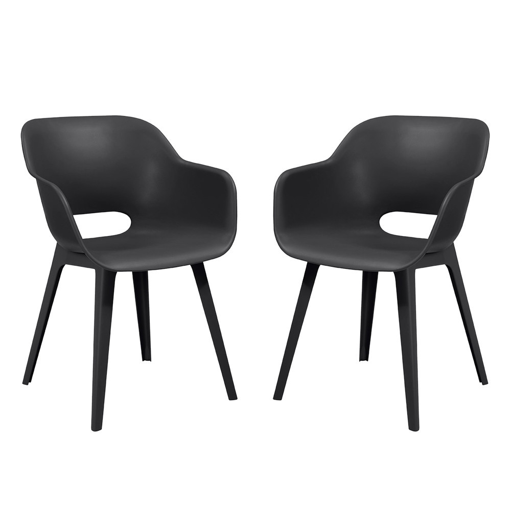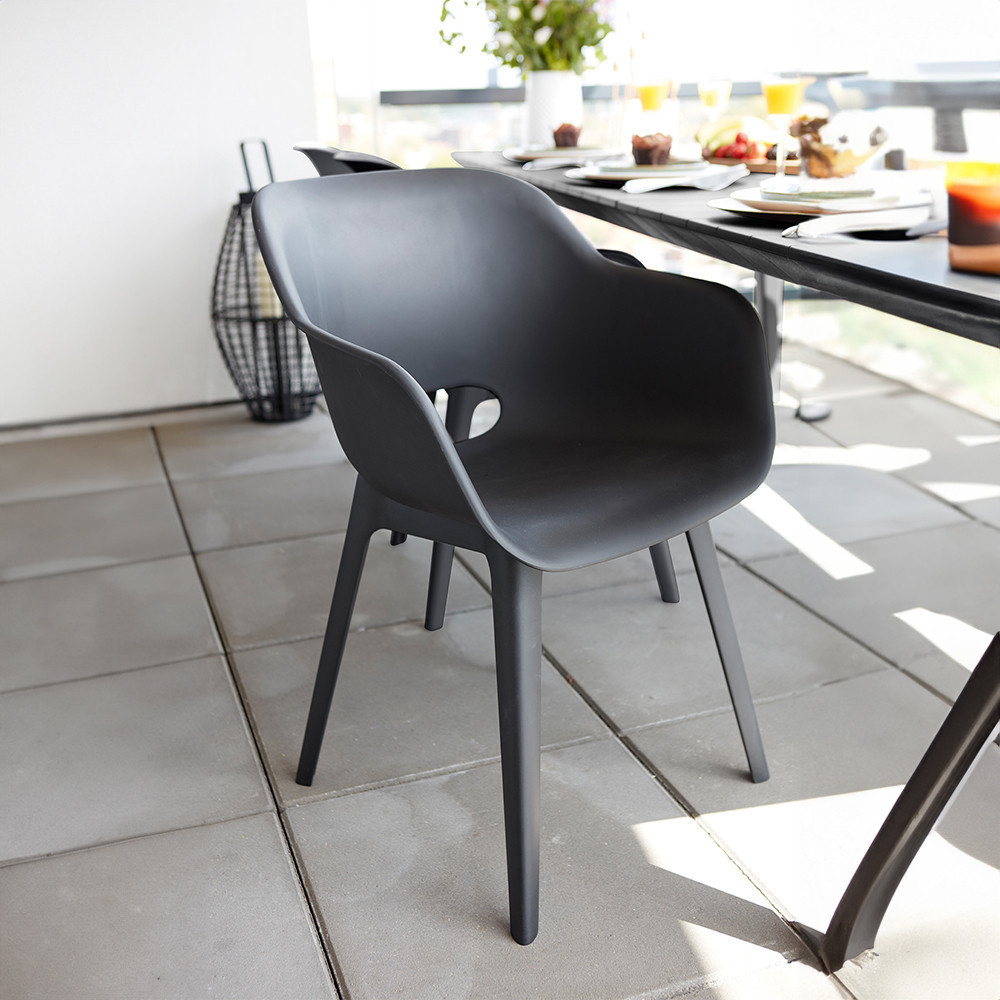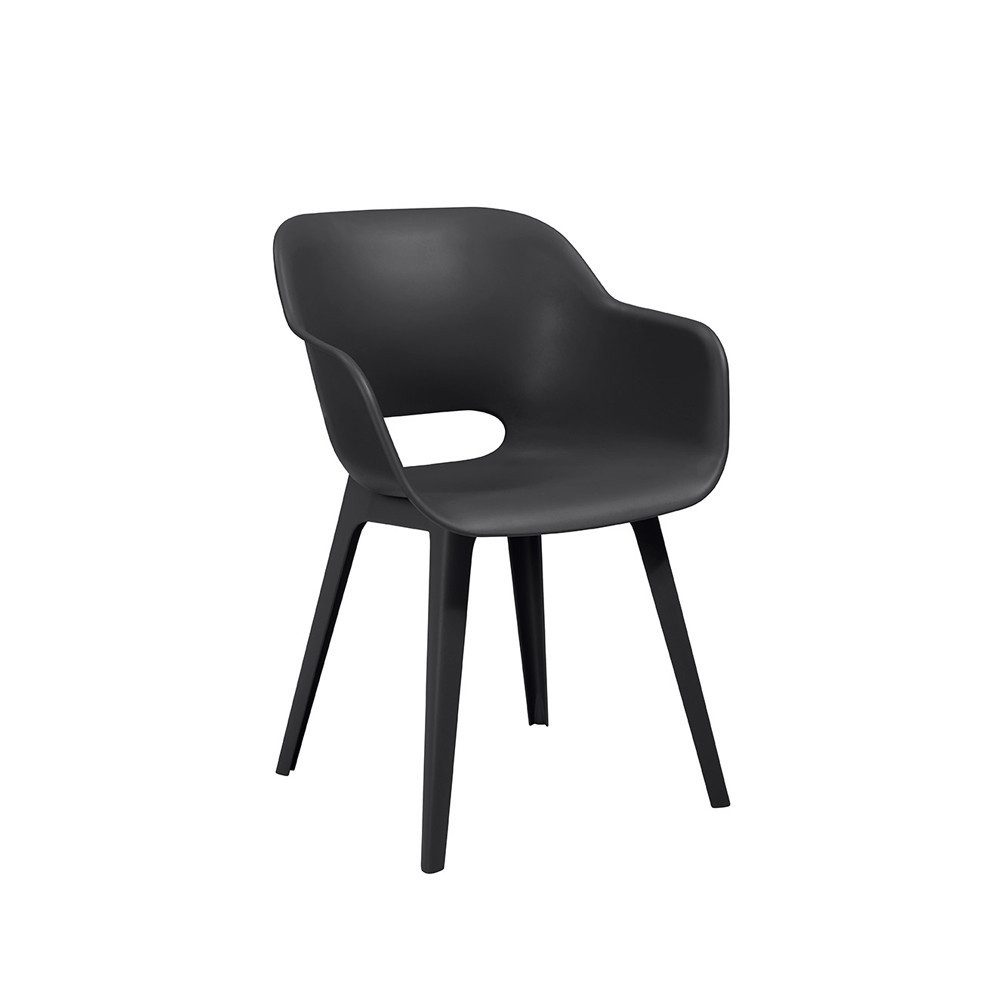 Akola Duo kerti szék grafit színben egyedi formájú, lekerekített háttámlával és karfával rendelkezik.
