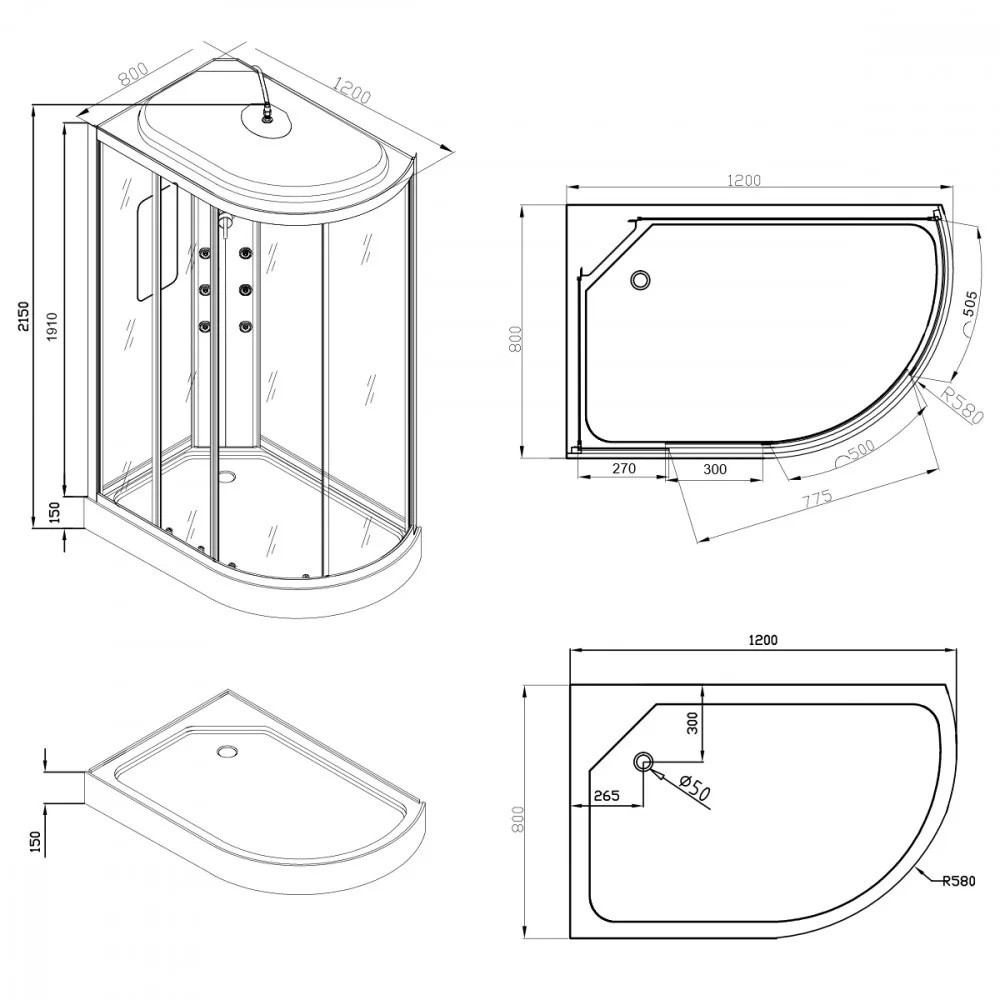Aria hidromasszázs zuhanykabin balos beépítési oldallal,
