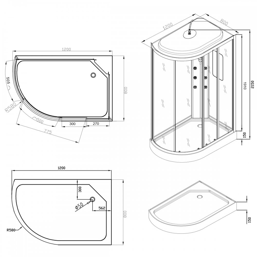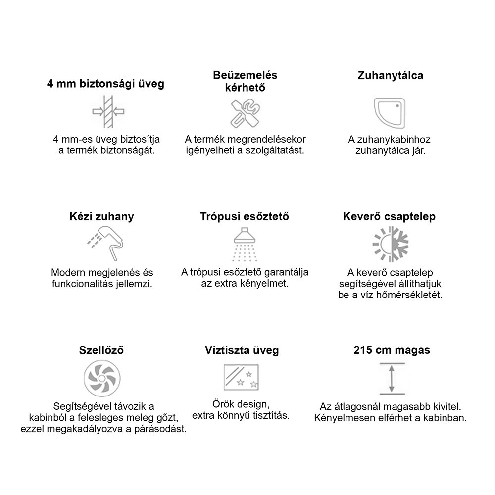 Aria hidromasszázs zuhanykabin jobbos beépítési oldallal