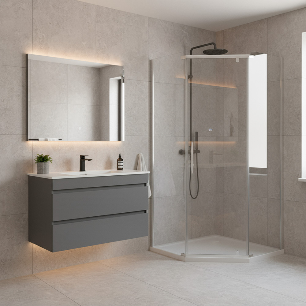 A Celtic 90×90 cm-es zuhanykabin jól illeszkedik a modern fürdőszobai környezethez. Letisztult, ötszögletű formája harmonikusan illik a legtöbb burkolathoz és szaniterhez.