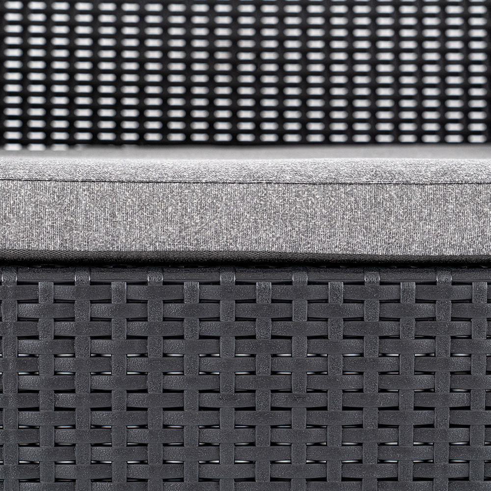 Időtálló bútor: A Grafit színű, stílusos párnákkal rendelkező kerti bútor szett könnyű, egyben tartós vázszerkezettel rendelkezik. Időjárásálló anyagai lehetővé teszik, hogy sok éven át a terasz, vagy az erkély kényelmes darabja maradjon.