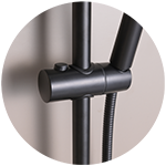 A Corina Black zuhanyszett stílusos és modern megjelenésű. Az ABS kézi zuhanyfej és esőztető minőségi anyagból készült, melynek köszönhetően sokáig élvezheti használatát. A zuhanyszett teste rozsdamentes acélból készül, kézi zuhany magassága állítható.