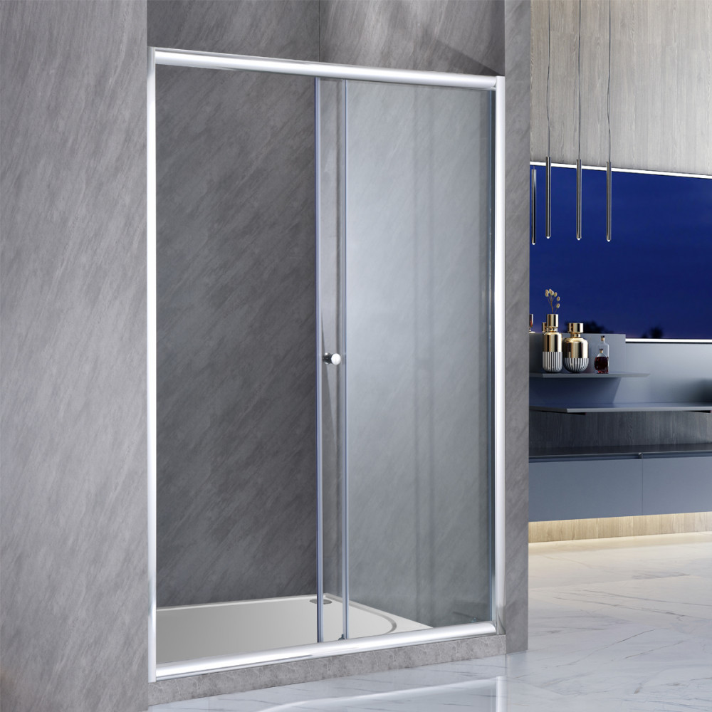 A termék állítható szélességű mindkét oldalon 15 mm-el. A zuhanyajtó krómozott alumínium profillal és duplagörgőkkel van ellátva. Univerzálisan szerelhető jobb vagy akár balos irányba is.