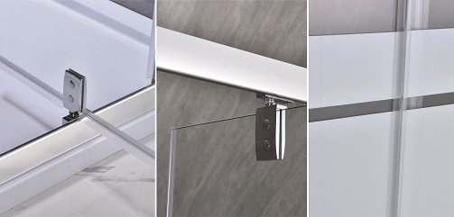 A zuhanyajtó krómozott alumínium kerettel és 6mm-es víztiszta edzett biztonsági üveggel van ellátva. A modell 76-91 cm-es szélességgel és 185 cm-es magassággal rendelkezik.