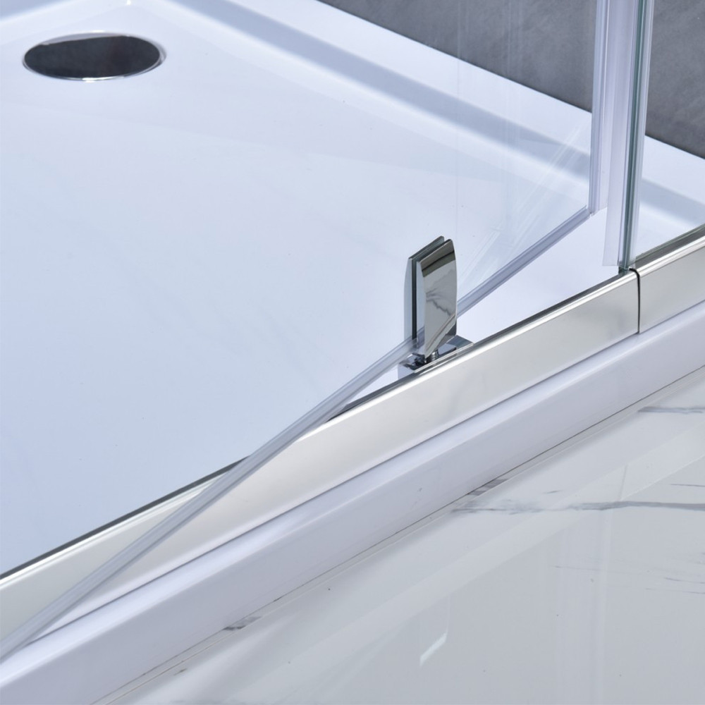 Önmagában is beépíthető zuhanyajtó, 96-111 cm között állítható a szélessége, 6mm-es biztonsági víztiszta üveggel, krómozott alumínium profilokkal és ajtófogantyúval rendelkezik.