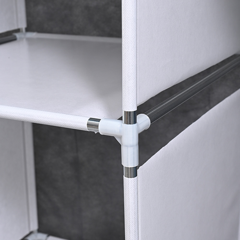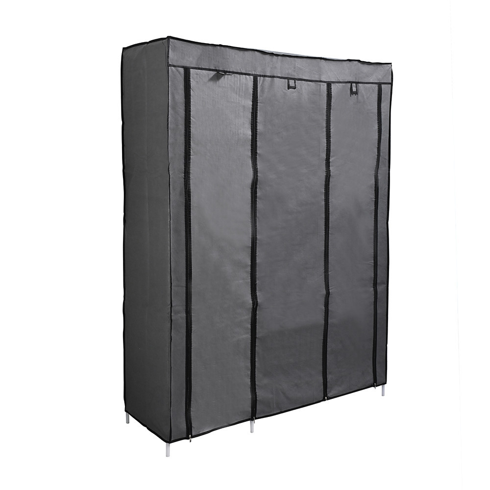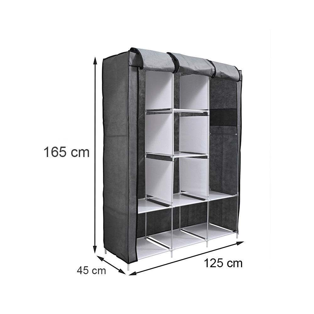 • Anyag: Tartós fémváz és magas minőségű szövetborítás, amely megóvja a ruhákat a portól. A borítás cipzáros kialakítása megkönnyíti a szekrény zárását, és biztosítja, hogy a ruhák védettek legyenek a szennyeződésektől.