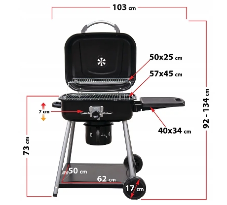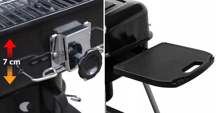 A széngrill rostély képes a magasság és a fűtőelem zökkenőmentes beállítására , amely lehetővé teszi az ételek elkészítésének ellenőrzését és tökéletes elkészítését. Funkcionális előny az oldalsó polc és egy további alsó polc, amelyek megkönnyítik a grillezést és a praktikus kiegészítők tárolását. Az állítható szellőzésű fedél lehetővé teszi a hőmérséklet beállítását.