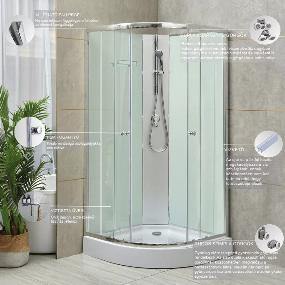 - Akik hosszú távú, stabil szerkezetű zuhanykabint szeretnének csendes ajtómozgással.