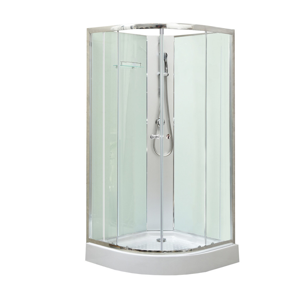 íves zuhanykabin zuhanytálcával és teljes felszereltséggel