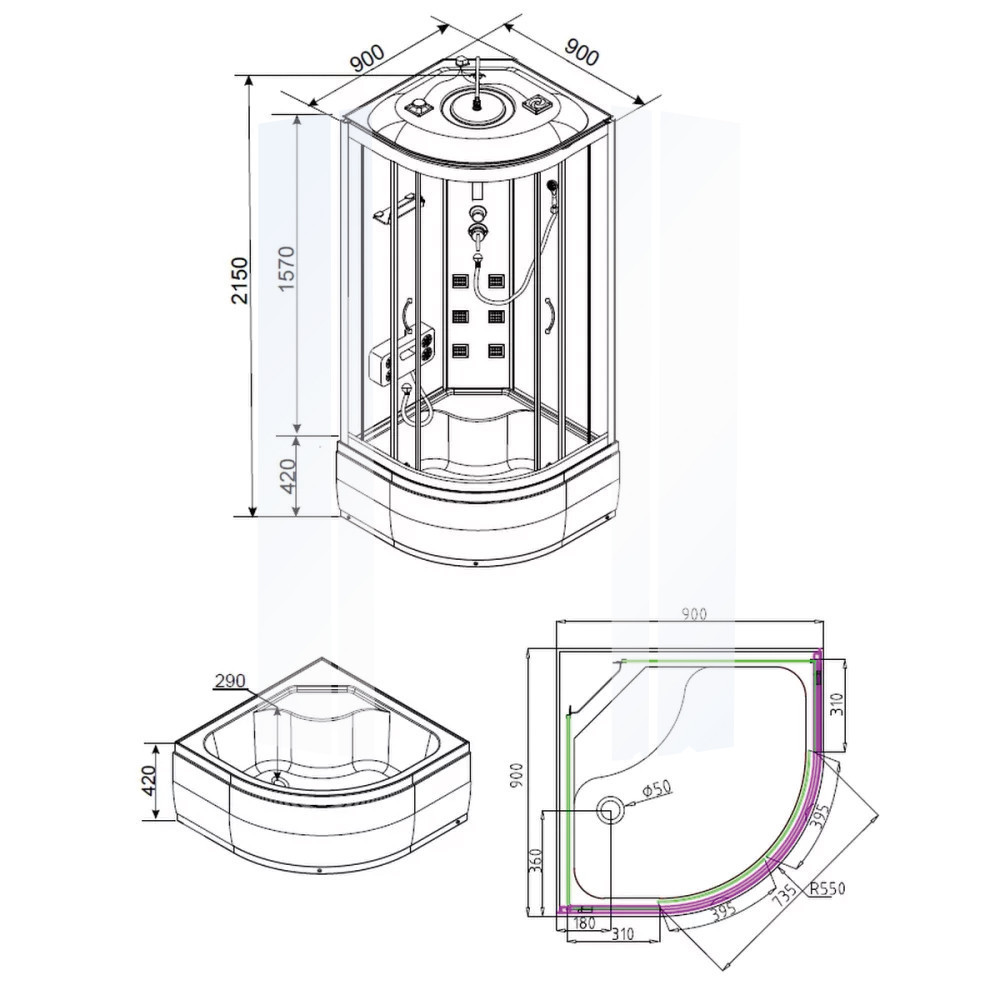 Mérete90x90x215cmTálca ma.42cm