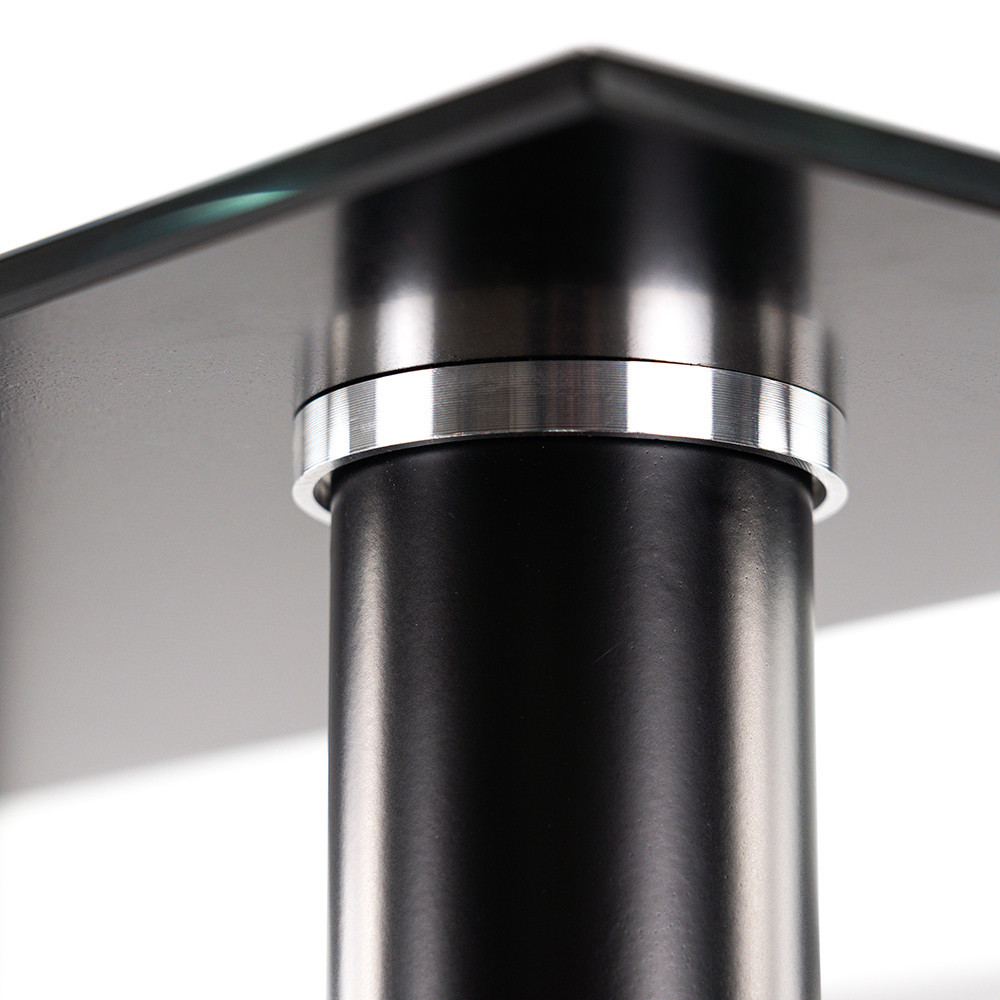 A porszórt acél váz és az edzett üveg kombinációja egy hosszú távon is megbízható étkezőasztalt eredményez, amely nemcsak esztétikus, hanem kiemelkedően stabil és könnyen kezelhető is.