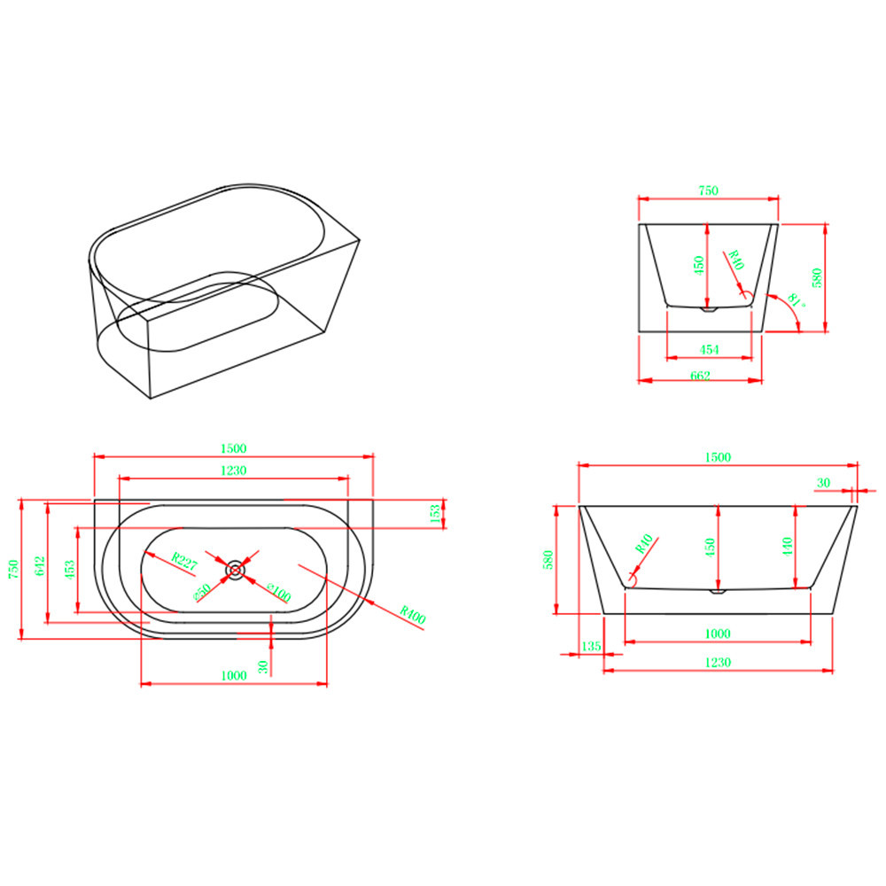 Still szabadon álló fürdőkád 150x75x58 cm