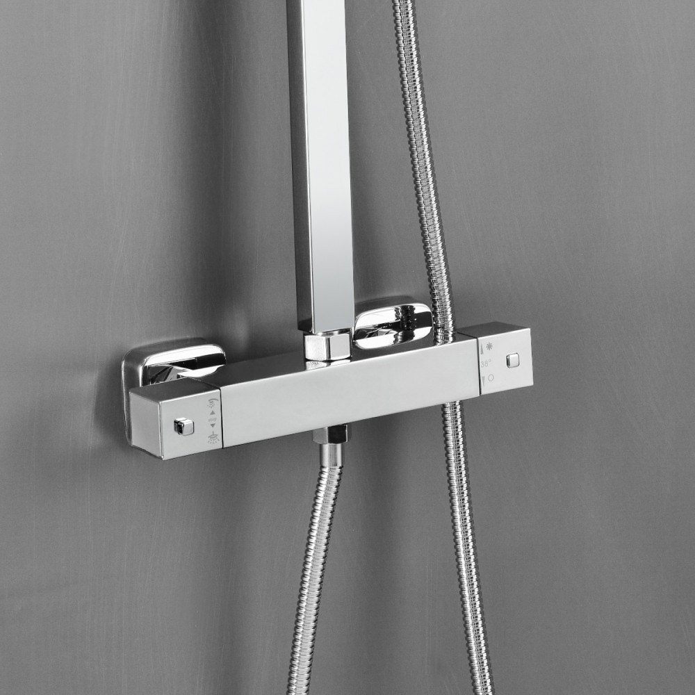 Termosztátos, falon kívüli zuhany csaptelep, Rozsdamentes acél