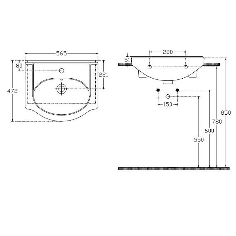 A V55 szárnyas kerámia mosdó számos pozitív tulajdonsággal rendelkezik. Ezek közé tartozik a tökéletesen letisztult körvonalak és az egyenes rakodófelületek. Csaplyukkal és túlfolyókkal rendelkezik. A mosdó 565x472 mm-es.